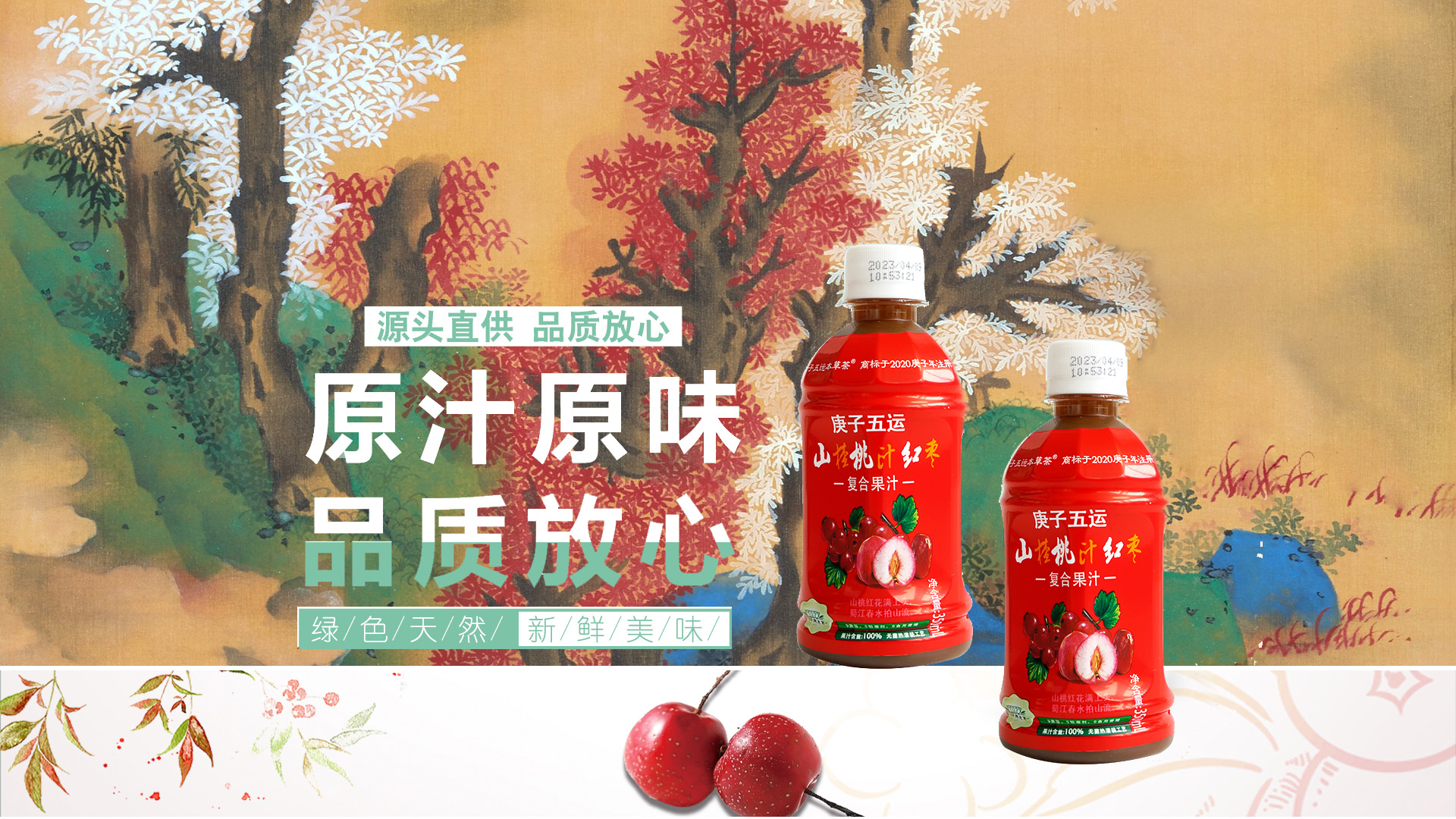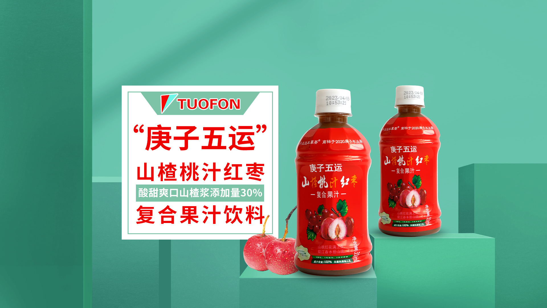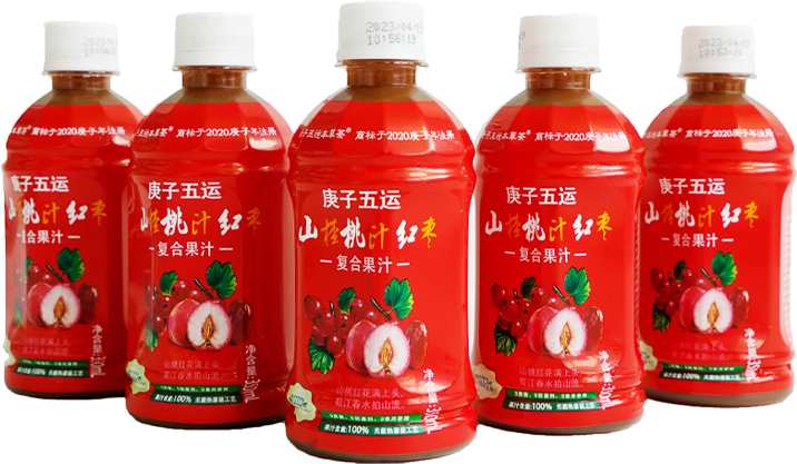 公司首款复合果汁饮料“庚子五运”山楂桃汁红枣复合果汁,口味独特酸甜爽口。有桃子红枣的天然香甜口味。